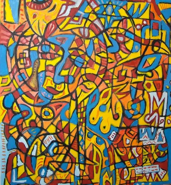 On the subject of my painting, I work essentially on the basis of four colours,red, blue, yellow and white. Beginning with this range, I transform their combinations into other colours, but always respect my point of departure.