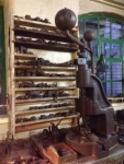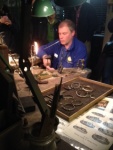 It’s amazing the casualties were not frequent.  Fisher demonstrates how a skilled worker, apprenticed over seven years, could precision weld jewellery.  Using a Bunsen burner and circular breathing techniques, he would blow through a pipe from one side of his mouth while smoking out of the other.