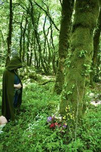 Druid performing a ritual in Brittany forest. Photo credit: Stephanie Sears.