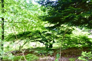 This scientifically ‘sensitive’ approach to forest has found support among contemporary European Druids. In the 1960s and 70s, ancient pagan beliefs regained popularity, influenced by America’s movement ‘Nature- as- way- of- life’, as put forth in Bron Taylor’s book Deep Green Religion. But while the American movement leaned towards environmentalism, Europe’s enduring paganism, labelled “neo-paganism” stuck to its spiritual traditions. Celtic Druidism had revered Cernunnos, the horned god of forests, while Baltic-Finnic paganism had looked to Tapio, a similar divinity, and the Norse to the tree Yggdrasil…Today’s Druidic groups continue those traditions and are officially listed under the umbrella organization OBOD (order of Bards, Ovates and Druids). In one such group in Burgundy, Philippe Greffet regularly hosts a jovial and epicurean bunch of Druids, and believes that we would do best to live among trees so as to connect with vital sky and earth energies. A notion that struck me as remarkably in tune with science’s more recent revelations about tree life. Trees thrive thanks to miles of mycorrhizal filament networks underground, supplying and transferring water and sugars. Above ground, they connect, by photosynthesis, with the sun and react to tides and celestial movement. My walk in a Brittany forest, with the Druid Taliesin, closely resembled Shinrin-Yoku, or ‘forest bathing’, a therapy born in Japan against ‘technostress’, (i.e. too much screen time). Adopted in Europe during the Covid crisis, Shinrin-Yoku has gained ground as a natural remedy for high blood pressure, stress, cancer, frayed nerves, sleeplessness.[14] Thus, is the forest gradually becoming a place of medical and spiritual therapy. Mindful of this, my friend Laura gently guides her Shinrin-Yoku groups in Fontainebleau forest, well beyond fresh air walks or environmental lecturing, into a playfully esoteric relationship with the forest. Enchantment seems to dwell all around us. Her approach rests on the science of ecologists like Suzanne Simard who, in her writings, has put forth notions of ‘mother’ trees and family groupings, using terms which intentionally foster a greater relatability to forests. Likewise, the silviculturist, Peter Wohlleben, in his book The Hidden Life of Trees,[15] promotes the idea of a forest being, capable of feeling and some form of thought process. Such a notion had previously been expressed by D.H Lawrence in his short story Saint Mawr: “They smell to me more alive than people. These trees hold their bodies hard and still, but they listen with their leaves.”